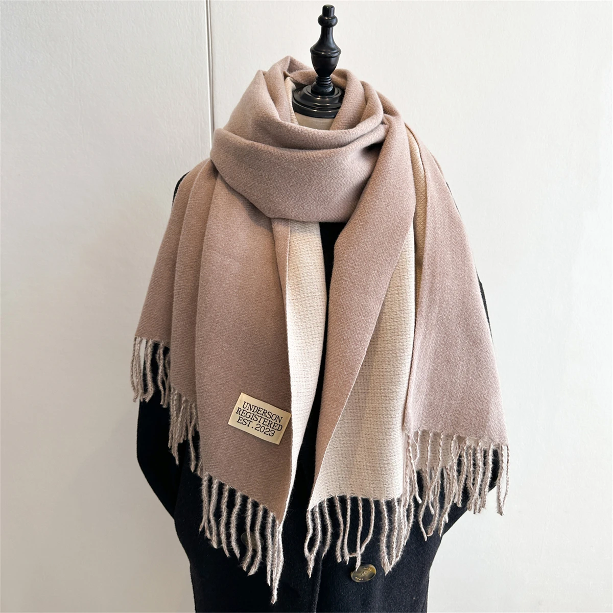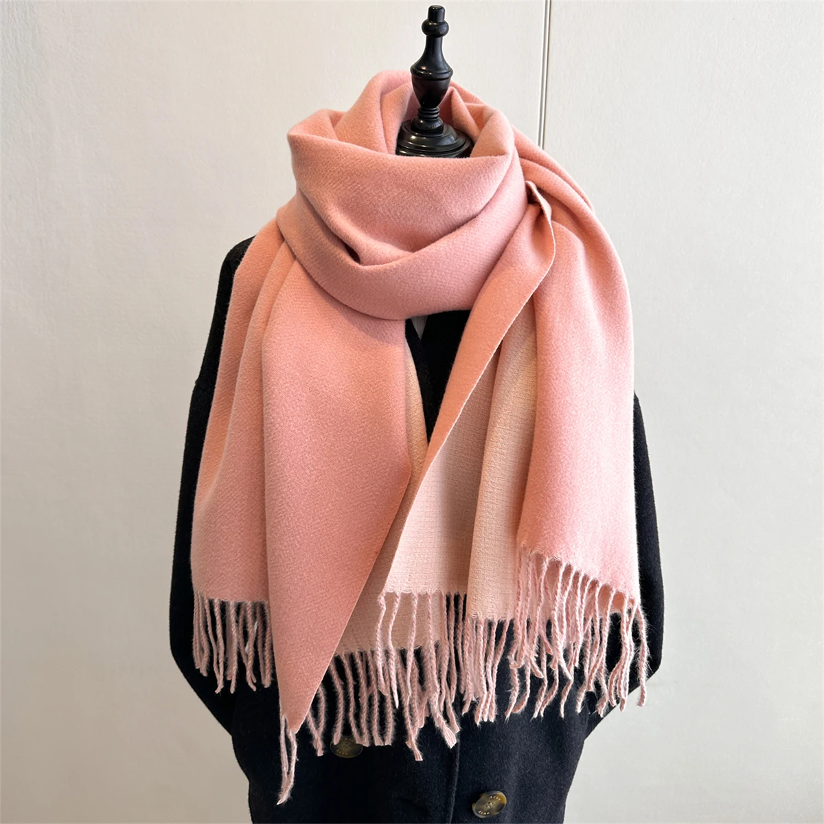 وشاح كشميري أحادي اللون للنساء ، بشمينا دافئ ، أوشحة نسائية ، بطانية طويلة ، شالات سميكة ، ناعمة ، علامة تجارية فاخرة ، شتوية